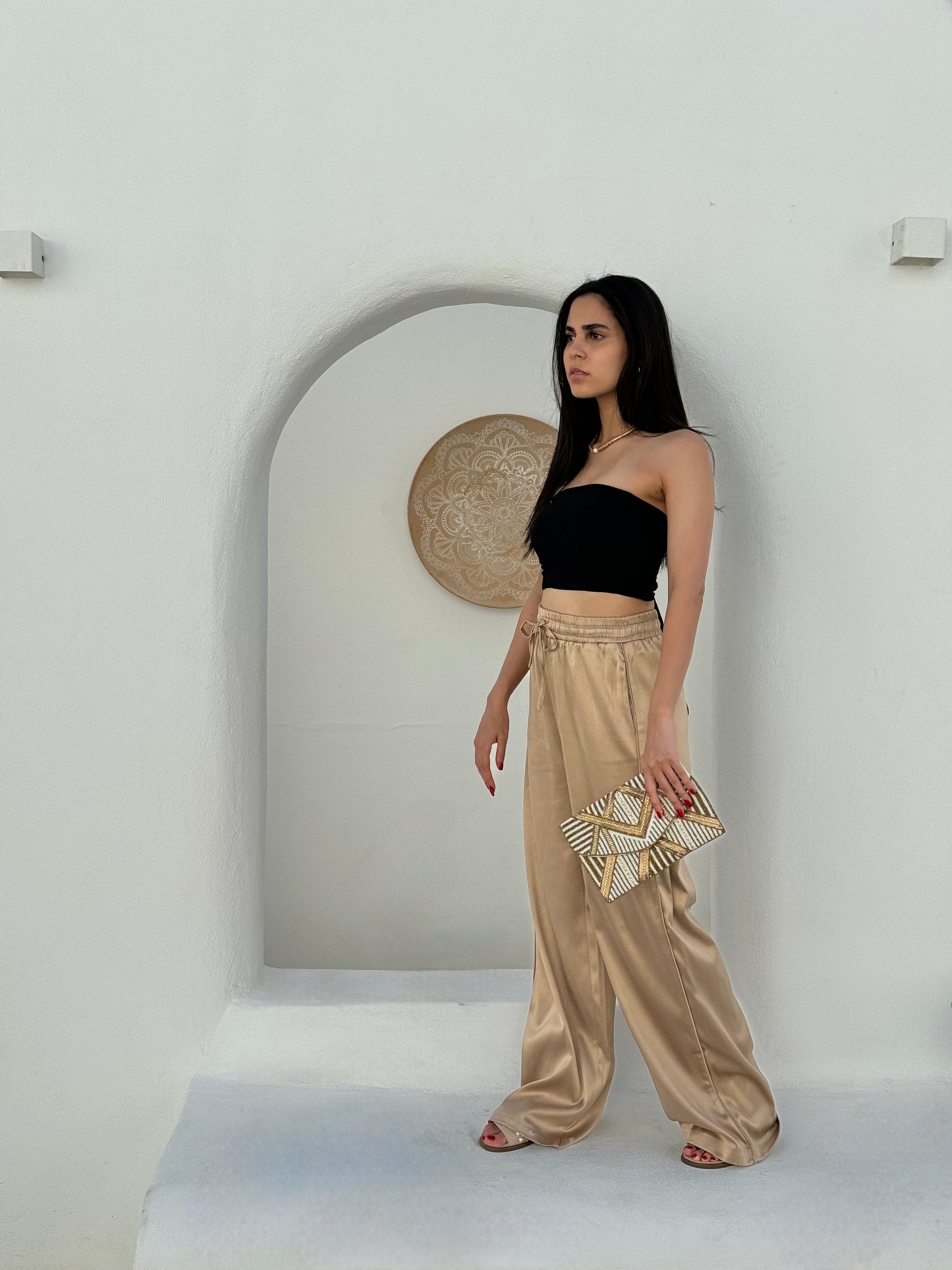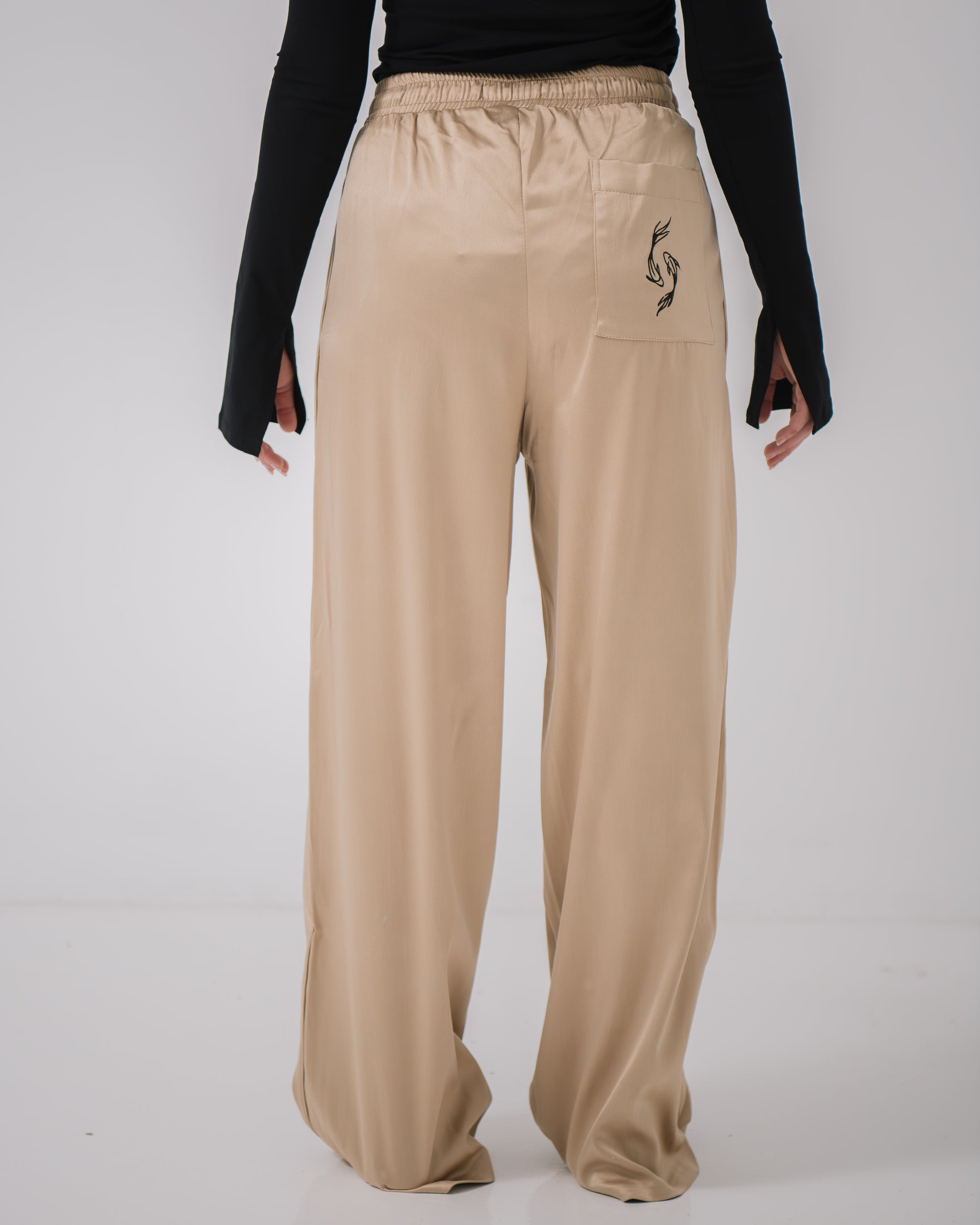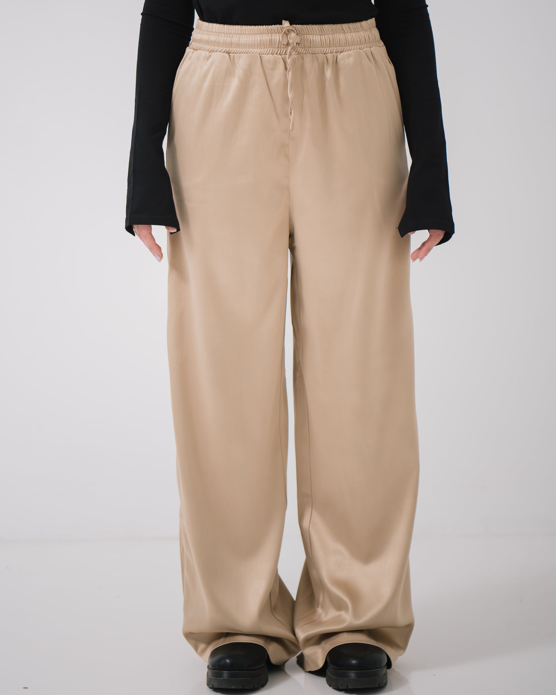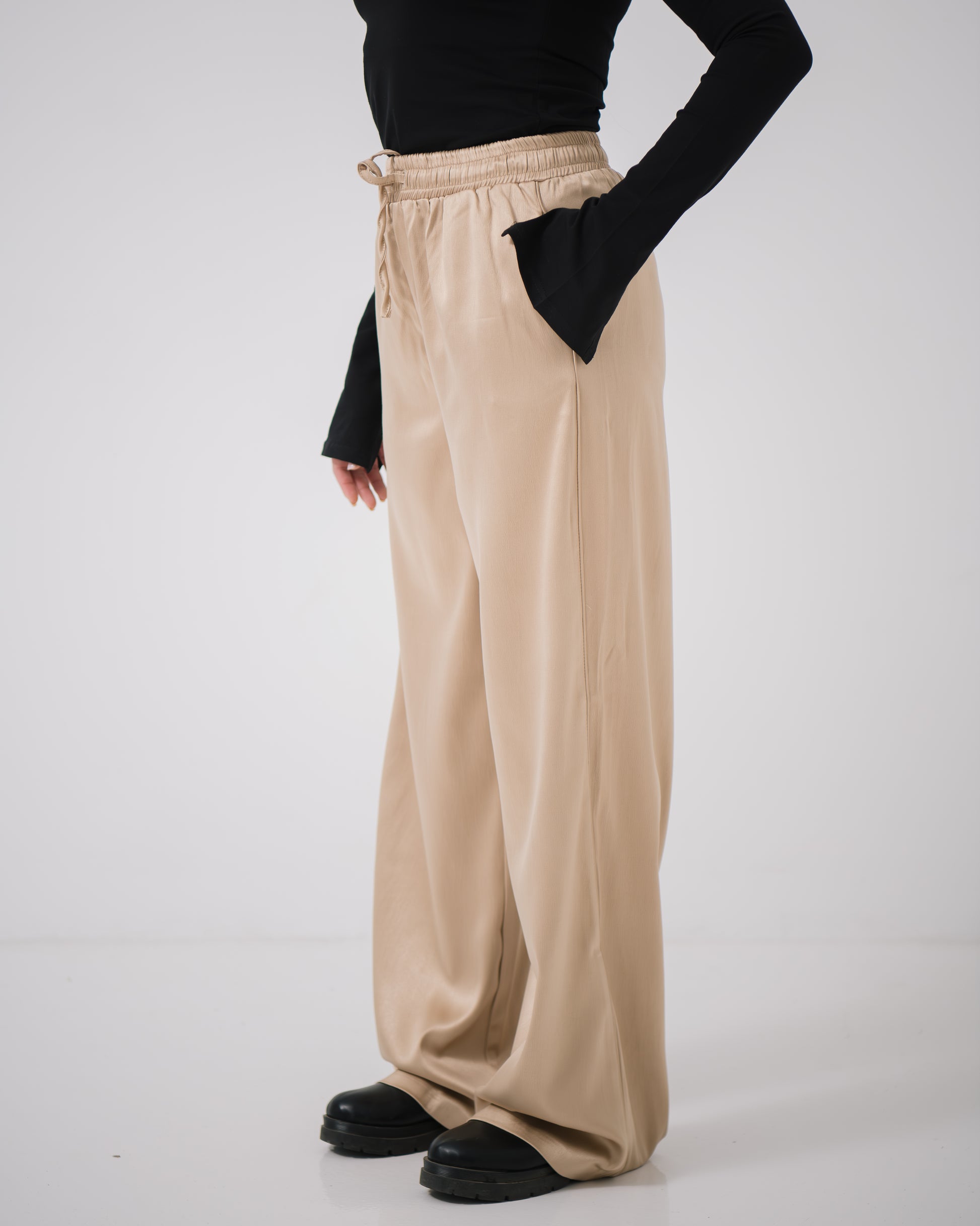 With a sophisticated, non-transparent fabric and practical pockets, the Aurora Satin Pants offer both elegance and functionality, making them ideal for both formal and casual outings.